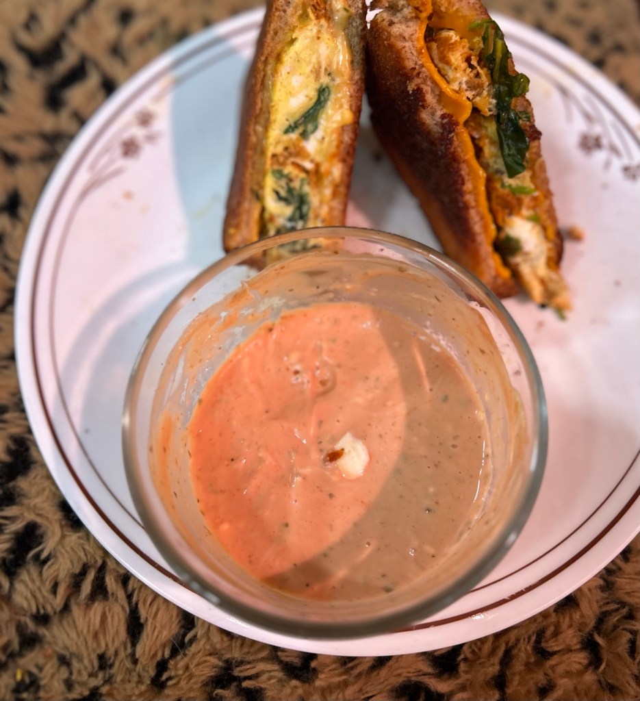 - Put everything in a bow and mix. Enjoy this dip with this sandwich or french fries