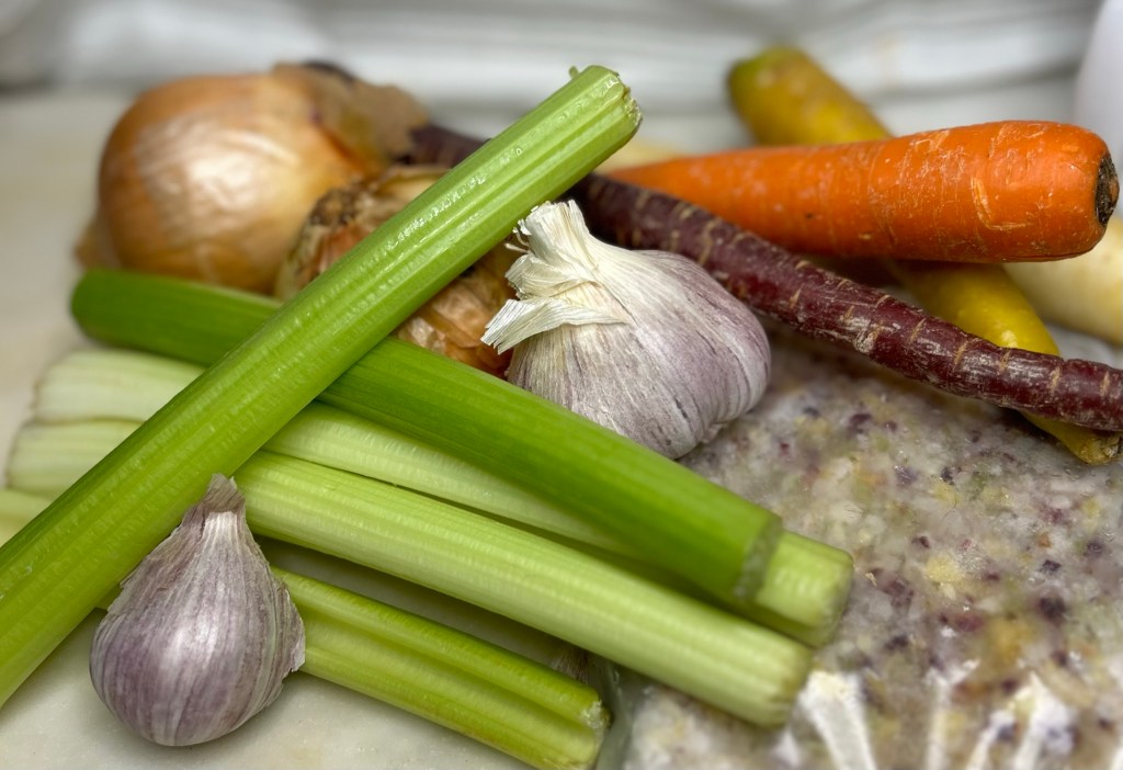 I like to have a finer cut mirepoix, and I like to add garlic. Perhaps this changes what I’m calling Mirepoix, in French cooking, I’m not sure, but this is what I make and use for a base in all of my homemade broths, soups, stews and sauces.