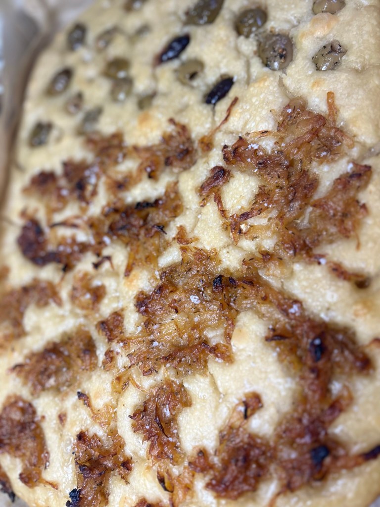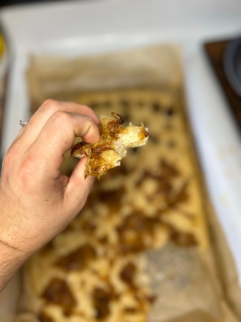 - 20 g Olive Oil, poured over Focaccia and onto pan, before adding toppings.